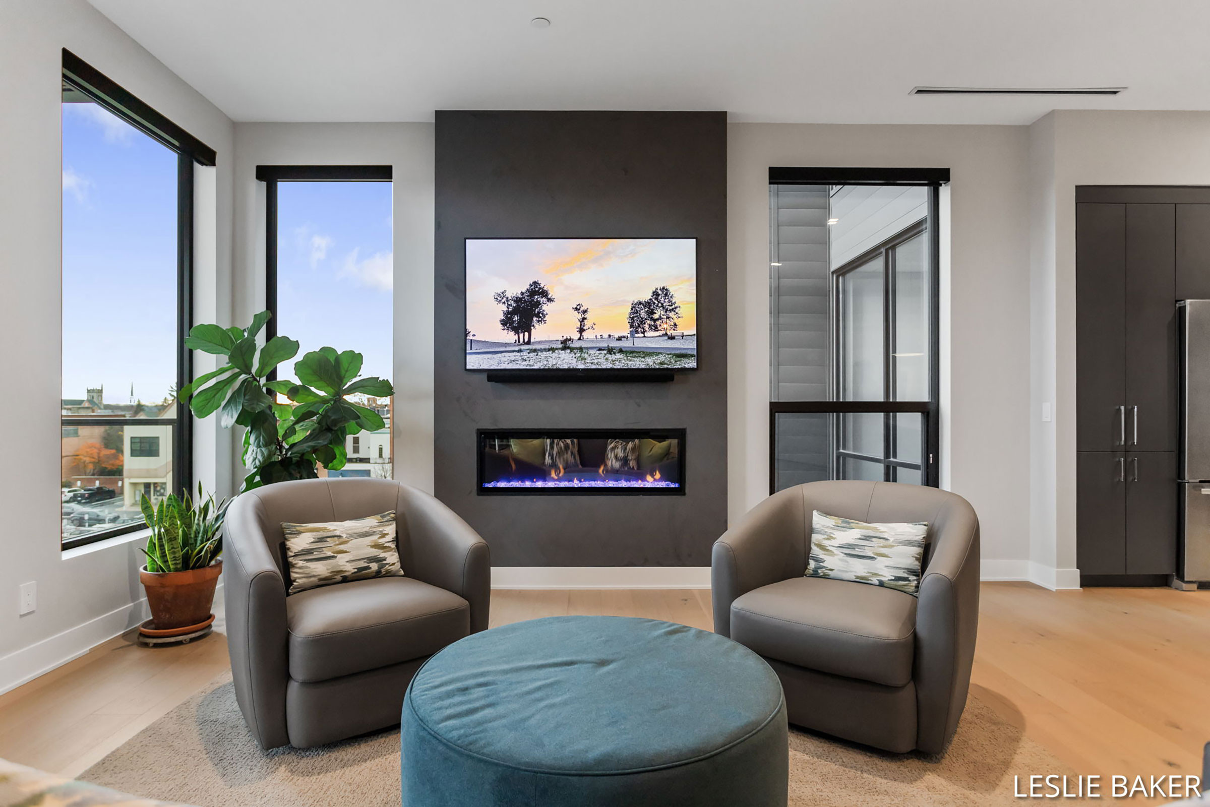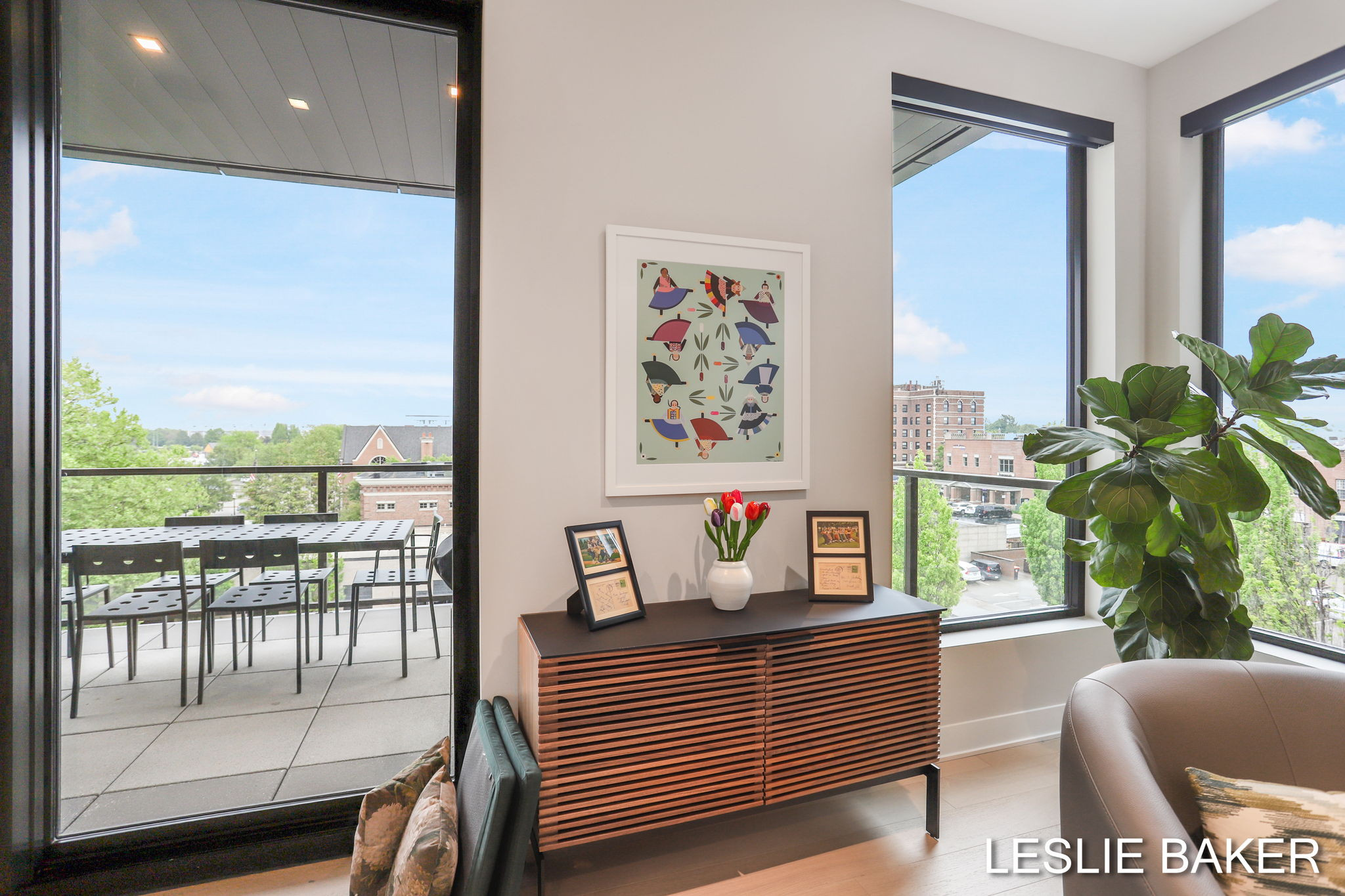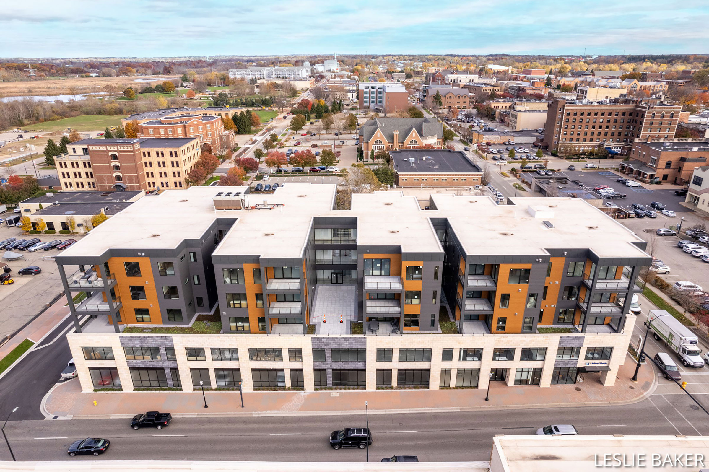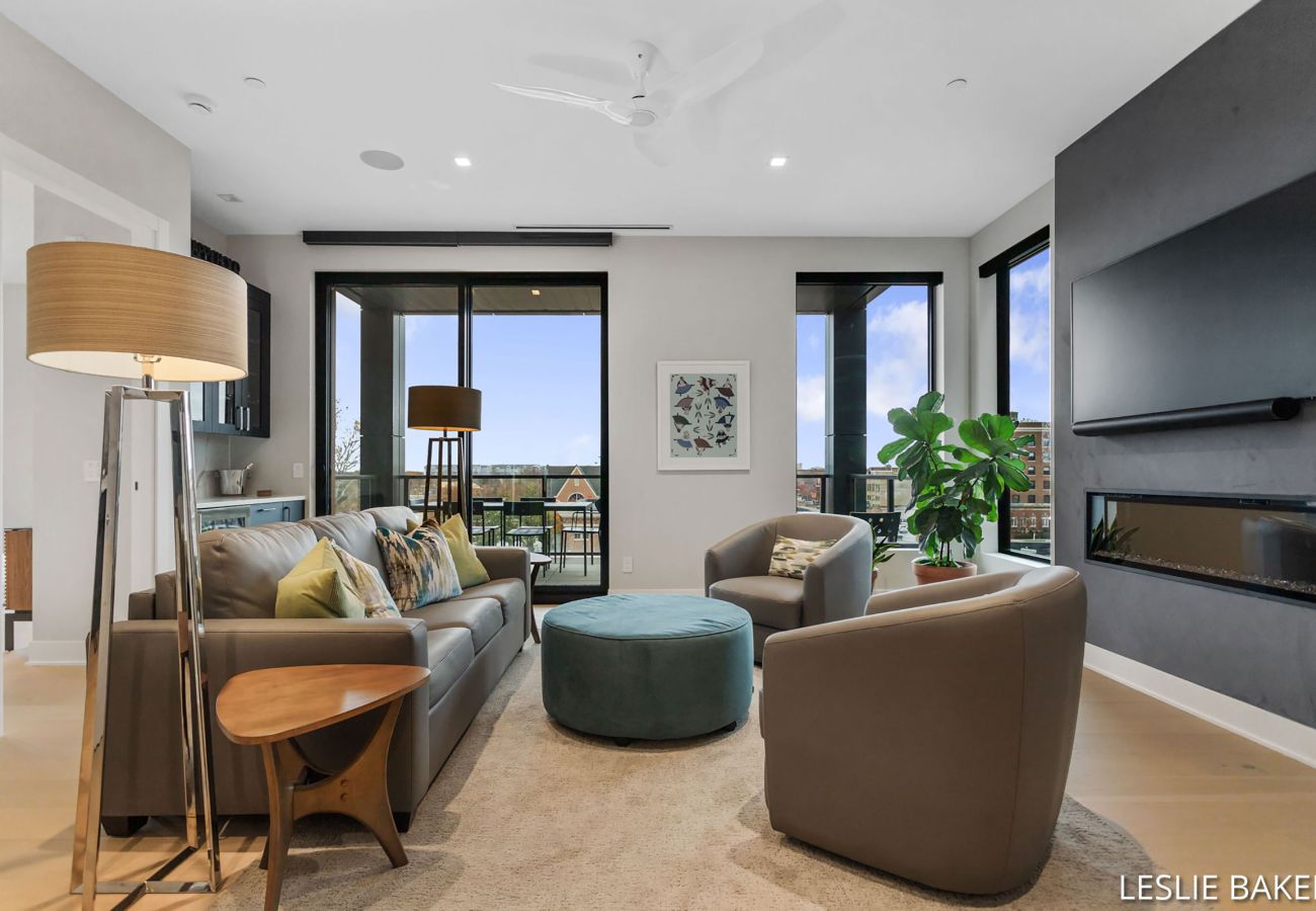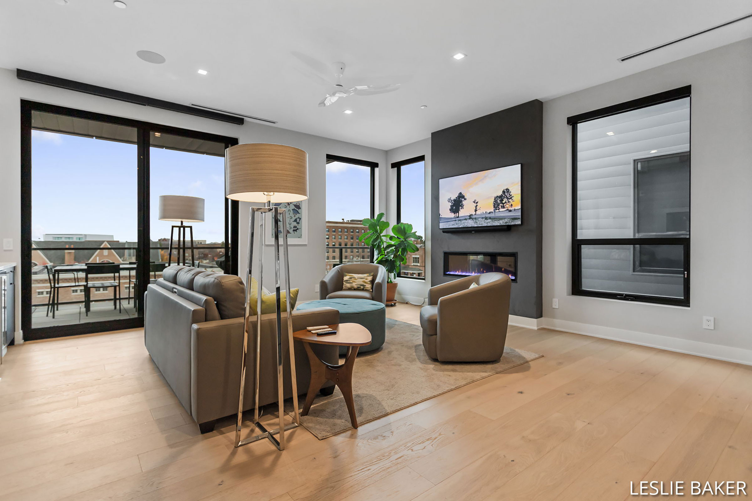 Welcome to your home away from home - perfect for business or pleasure! This beautiful, brand new condominium in Downtown Holland is just steps away from the vibrant downtown scene and could be your front row seat for Tulip Time. Located in the heart of downtown and just off the parade route, you'll be within walking distance of 8th Street, Windmill Island and the Tulip Time carnival rides. The luxurious space is filled with high end touches, a gorgeous view of Holland, and cozy Dutch Heritage accents. The well equipped, open concept kitchen features a large island and offers unique touches including multiple coffee options, a variety of cooking essentials, and more! The inviting living space has plenty of seating, a smart TV and electric fireplace. The couch converts to a comfortable queen bed sleeping option. Enjoy mixing a drink from the living room bar and a quiet night on the balcony too, both accessed from the living room space. The bedroom features a comfortable king bed and wall to wall windows being both cozy and spacious with another smart TV. You'll love the spa-like bathroom with a separate toilet closet, huge walk in tiled shower, heated shower bench and heated floors!
