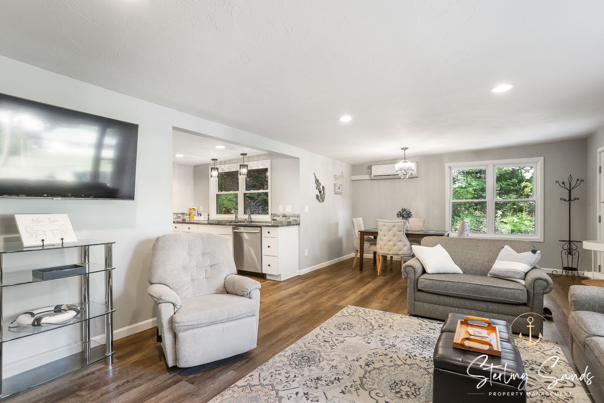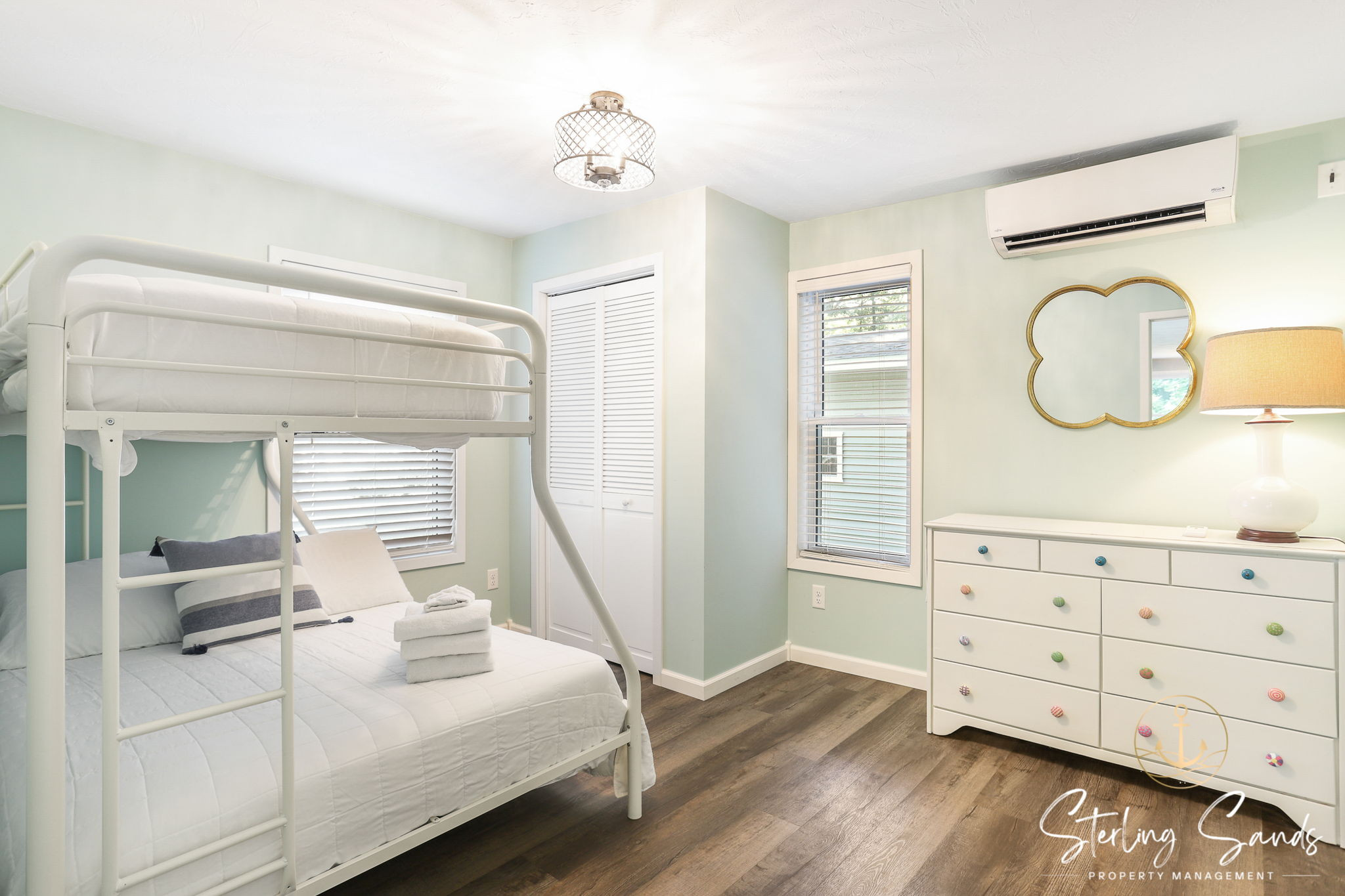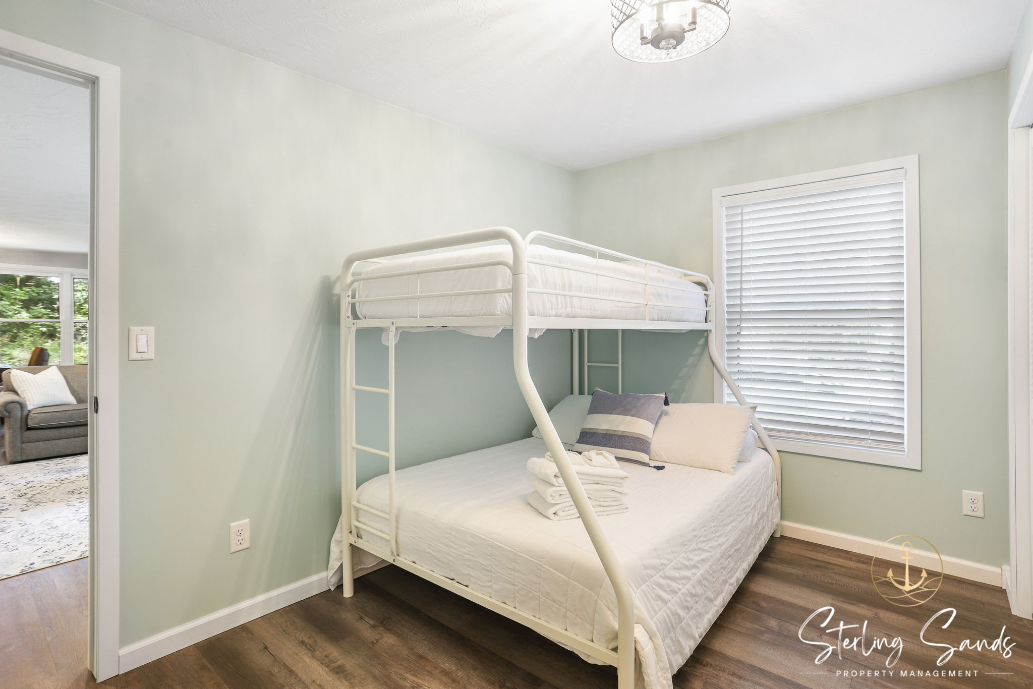 The two bedrooms can accommodate up to five people. The main bedroom has a queen bed with an attached full bathroom for extra privacy! The second bedroom features a bunk bed with a twin top bunk and full bottom bunk. Enjoy cooking at home during your vacation in the updated kitchen - or take a short walk to Sandy Point Beach House and have them cook for you!