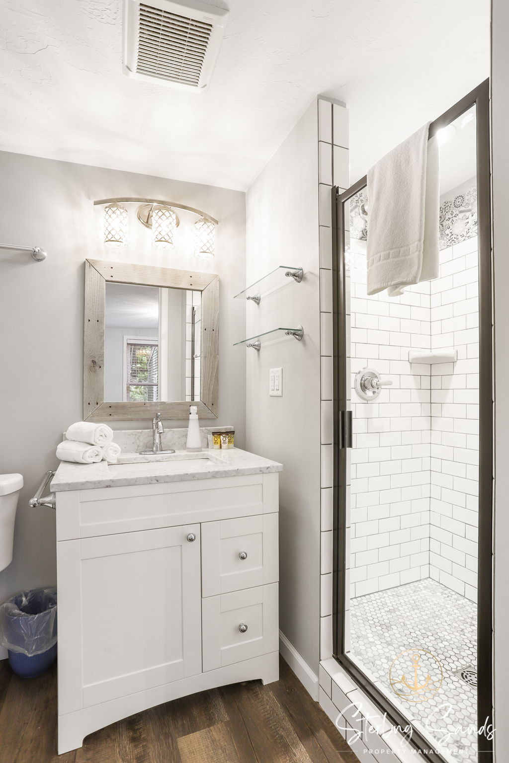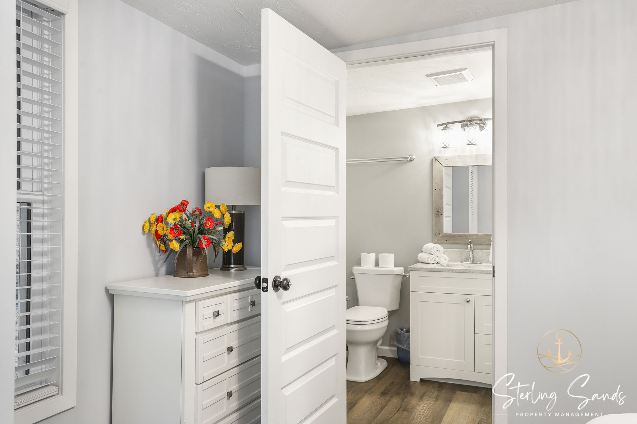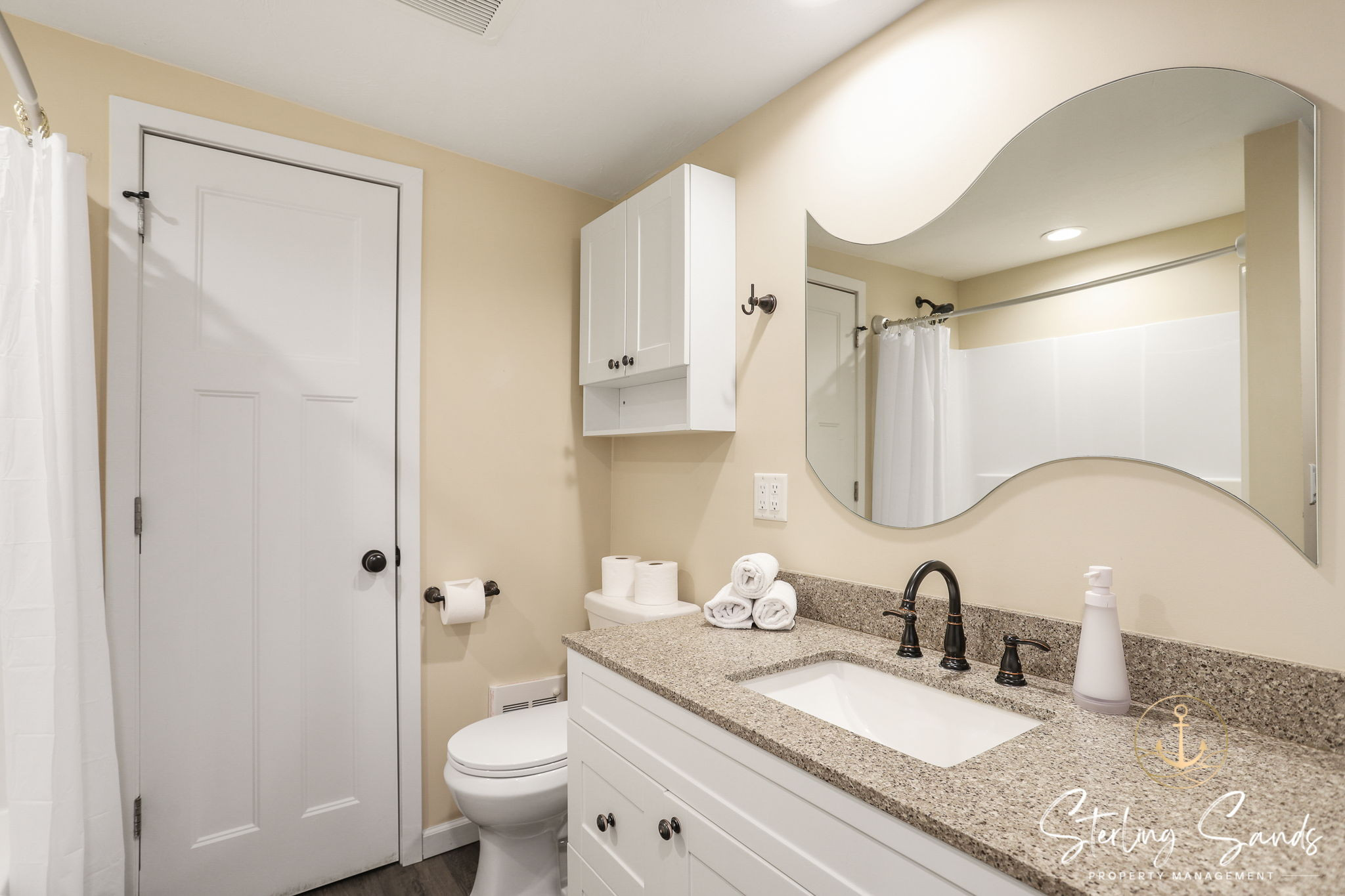The two bedrooms can accommodate up to five people. The main bedroom has a queen bed with an attached full bathroom for extra privacy! The second bedroom features a bunk bed with a twin top bunk and full bottom bunk. Enjoy cooking at home during your vacation in the updated kitchen - or take a short walk to Sandy Point Beach House and have them cook for you!
